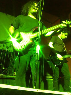 Montojo: Claro, claro. Es todo un trabajo. Nosotros vinimos y hablamos acá con el galpón, le contamos la experiencia y a partir de ahí se empezaron a enganchar y a apoyar esta iniciativa. De hecho Fm Block también nos está apoyando. Bueno el galpón y un montón de auspiciantes que nos permitieron tener un boletín para poder difundir la actividad. Está bueno que el dueño del lugar gane plata con el tema de las bandas pero también está bueno que las bandas no trabajen solo para él. Sino que se pueda la banda auto-sustentar y sacar por lo menos los viáticos que son un montón de plata y siempre los músicos estamos poniendo y poniendo. Entonces la idea es de llegar a un acuerdo y ver de qué manera puede ser más equitativo. Si bien sabemos que son los sueños del lugar y que hicieron una inversión, nosotros también invertimos cosas e invertimos tiempo.