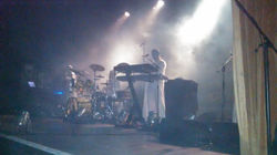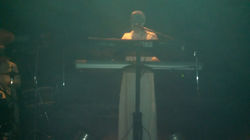 El momento ha llegado, se abre el telón y el Teatro estalla frente a Sig, que hace aparición con su singular estilo: desde la puesta en escena, lo gestual, hasta la presencia. Los señores de largas túnicas y piel completamente blancas, comienzan a tocar. Y cómo!!!